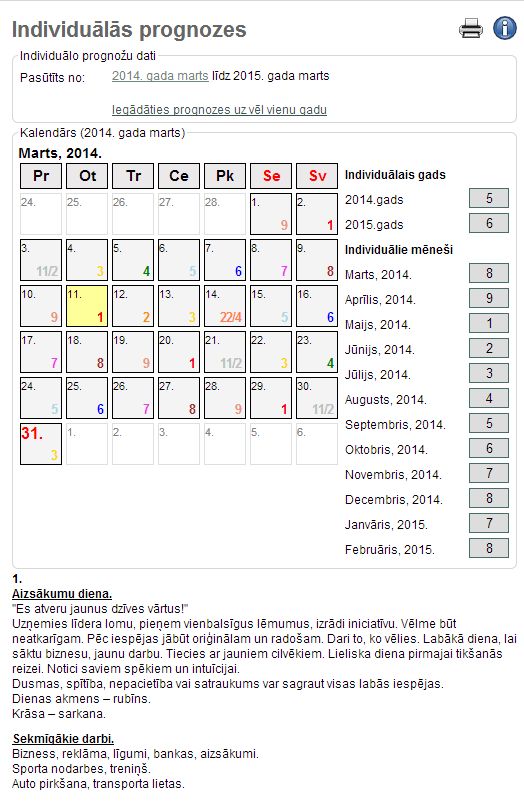 Klikojot uz attiecīgajiem skaitļiem, saņemsi numeroloģisku plānojumu.